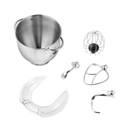 - Чаша миксера ёмкостью 5,7 литра изготовлена из нержавеющей стали, так, что в ней можно смешивать даже горячие ингредиенты. Благодаря ручкам на чаше, готовить ещё удобнее. В комплекте есть всё для приготовления кулинарных шедевров – насадки, крышка и чаша.