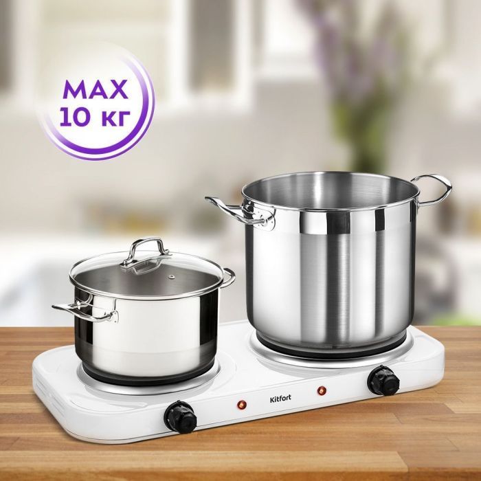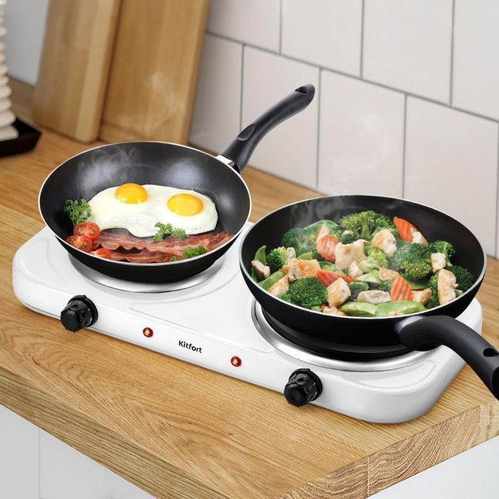 Электрическая плита Kitfort KT-174 практична и экономична. Плавная регулировка температуры, позволяет настроить нагрев под любые блюда и готовить их вкусно, быстро и абсолютно безопасно! Мощность 1000 + 1500 Вт. Количество конфорок 2.