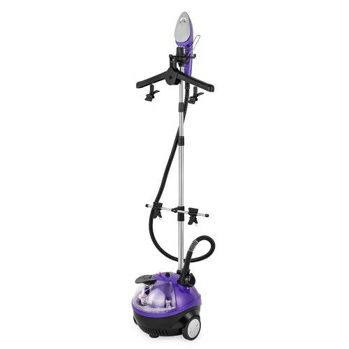 - В комплекте есть телескопическая стойка и складная вешалка. С их помощью можно отпаривать одежду в вертикальном положении. Фиксатор вешалки позволит вам закрепить вешалку на стойке. Ширину плечиков можно регулировать.