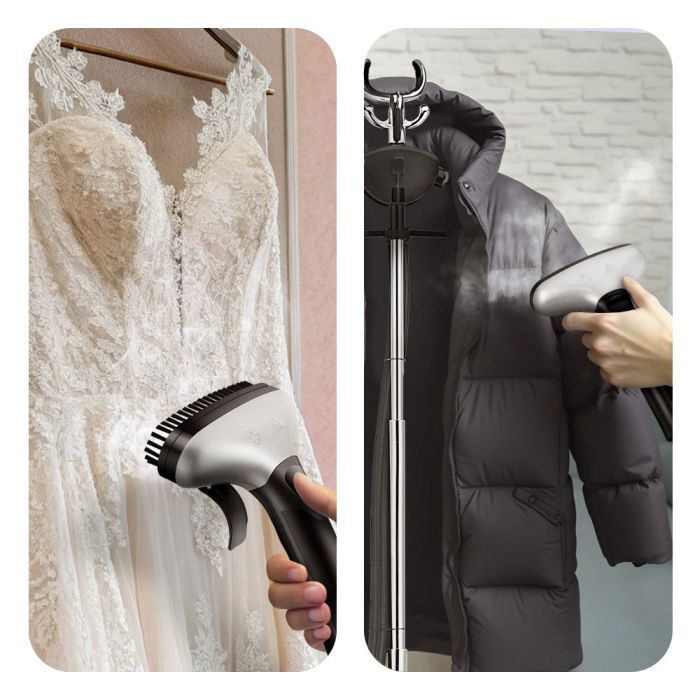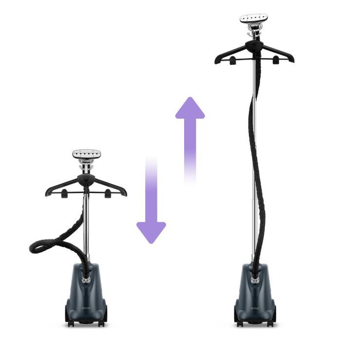 Отпариватель имеет складные телескопические стойки, которые, при необходимости, сдвигаются. Это позволит хранить прибор в любом удобном для вас месте или же использовать его на удобной для вас высоте.