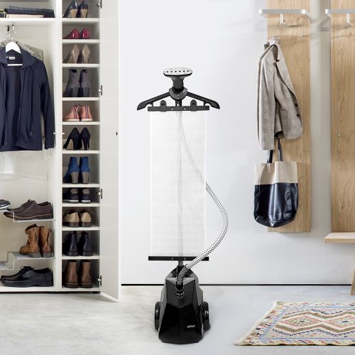 Она облегчает и ускоряет процесс глажки. Одежда размещается на специальной вешалке и во время отпаривания прижимается к поверхности доски давлением пара или утюжком.