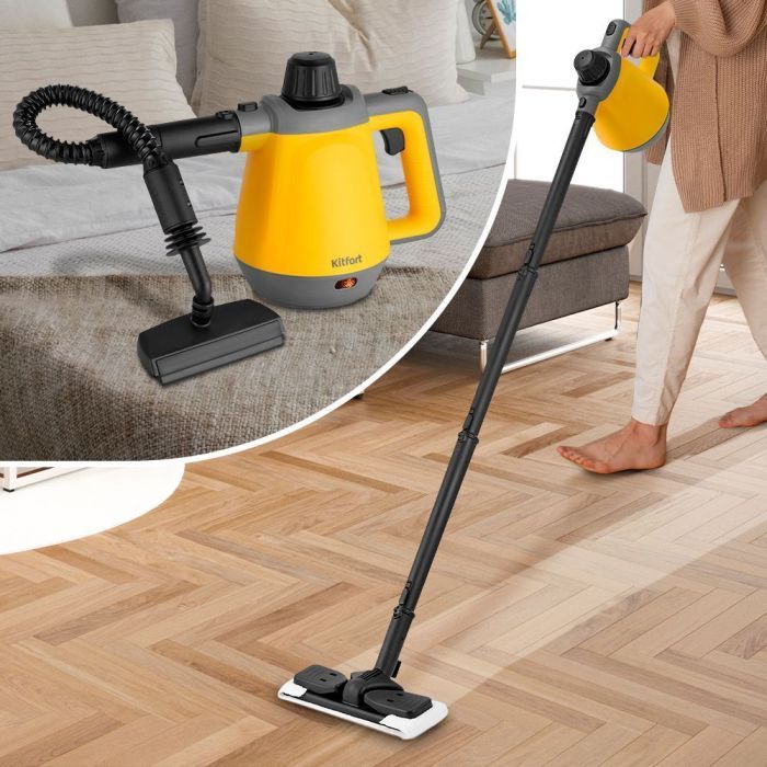 Пароочиститель КТ-9175 – многофункциональный прибор, способный заменить паровую швабру, дезинфектор, стеклоочиститель и отпариватель для тканей. Используя струю горячего пара, прибор отлично очищает поверхности и обеспечивает деликатную глажку вещей. Мощность 1200 Вт. Общая ёмкость бойлера 0,45 л.
