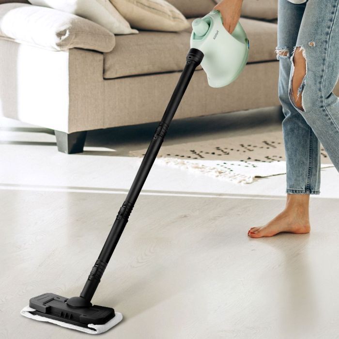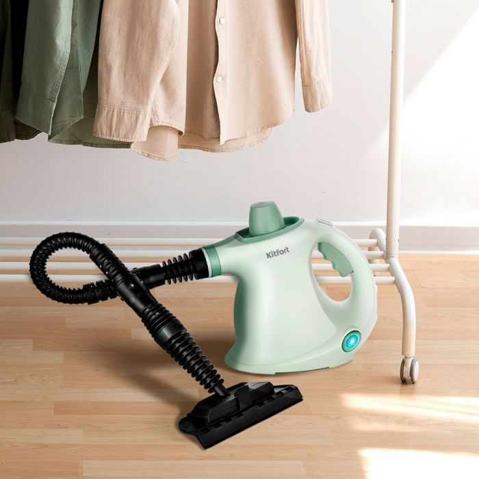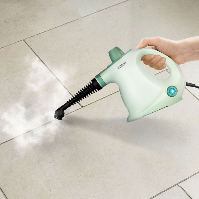 Пароочиститель КТ-9178 — многофункциональный прибор, способный заменить паровую швабру, дезинфектор, стеклоочиститель и отпариватель для тканей. Используя струю горячего пара, он отлично очищает поверхности и обеспечивает деликатную глажку вещей. Мощность 900–1050 Вт. Ёмкость бойлера 0,35 л.