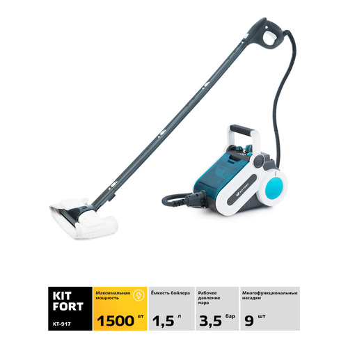 | Насадки в комплекте | Щётка для пола. Тряпка для пола. Струйная насадка. Маленькая круглая нейлоновая щётка. Большая круглая нейлоновая щётка. Насадка для отпаривания. Тряпка для отпаривания. Угловая насадка. Скребок |