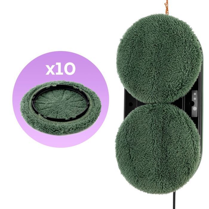 - К двум держателям тряпок на дне робота крепятся чистящие тряпки. В комплекте 5 пар чистящих тряпок, поэтому вы можете их менять во время уборки. Тряпки выполнены из микрофибры и поэтому они отлично оттирают и впитывают грязь.