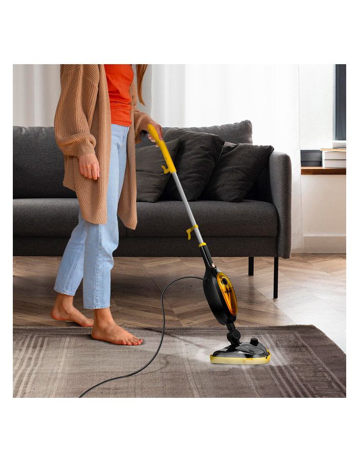 Устройство, которое поможет избавиться от пыли и грязи с помощью мощной струи пара, а также продезинфицирует обрабатываемую поверхность. Уборку паровой шваброй можно проводить без чистящих средств. Мощность 1300 Вт.