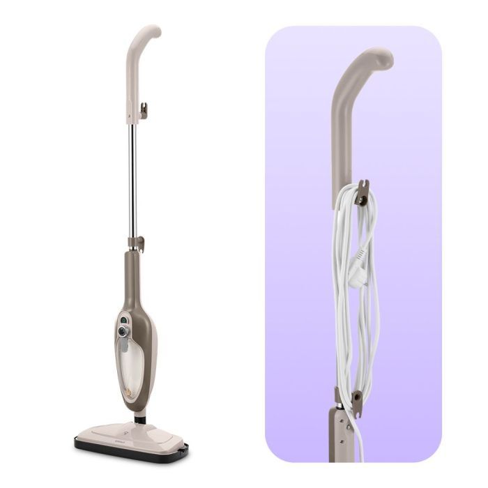 - Паровая швабра КТ-3910 имеет функцию вертикальной парковки, так что вам необязательно ставить её в шкаф. На удлинительной ручке предусмотрены держатели для шнура. Его длина – 4,5 м, что очень удобно для перемещения по квартире во время уборки.