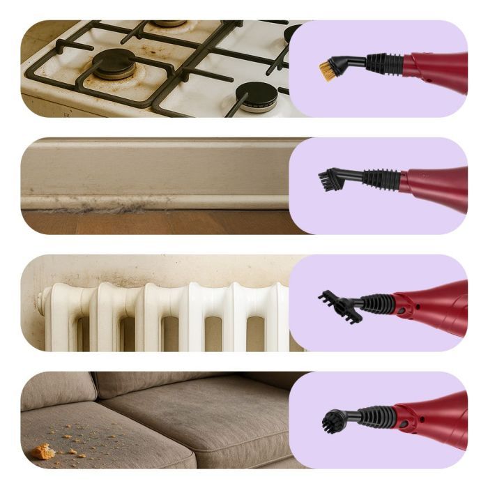 - Латунная и нейлоновая щётки эффективно очищают сложные загрязнения с помощью механического воздействия. Жир и стойкие загрязнения при дополнительном использовании определённых насадок убираются намного быстрее, без использования химии.