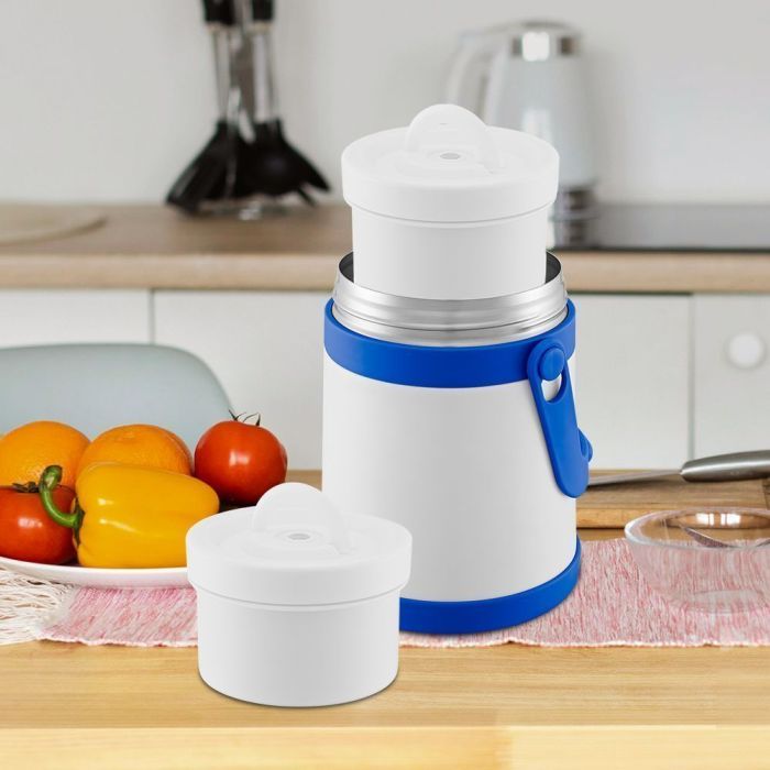 - Контейнер состоит из двух частей: сам пластиковый контейнер и внутренняя чаша из нержавеющей стали, что позволяет лучше сохранять тепло и избежать контакта еды с пластиковыми частями.