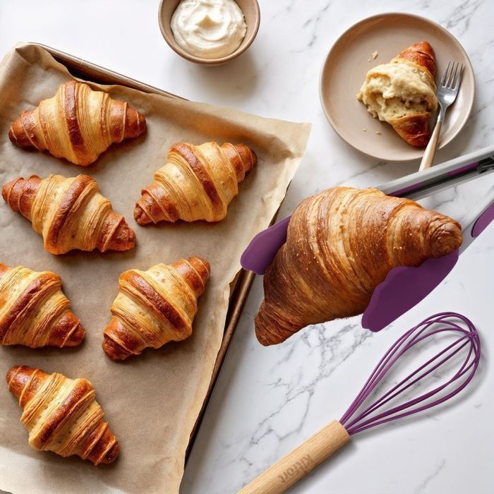 Щипцы выполнены из нержавеющей стали, ими легко переворачивать и извлекать продукты. Венчиком удобно взбивать яйца, сливки и тесто до воздушности.