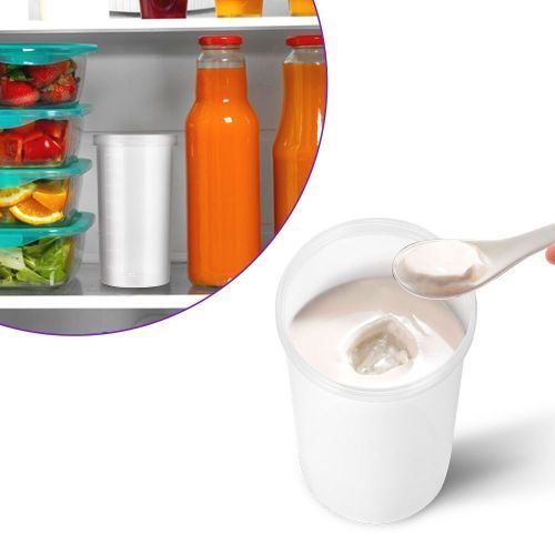 - Йогуртница равномерно нагревает чашу с ингредиентами, поддерживая заданную температуру. Прибор укомплектован пластиковой чашей на 1 литр с крышкой. Готовый йогурт можно хранить в холодильнике прямо в чаше.
