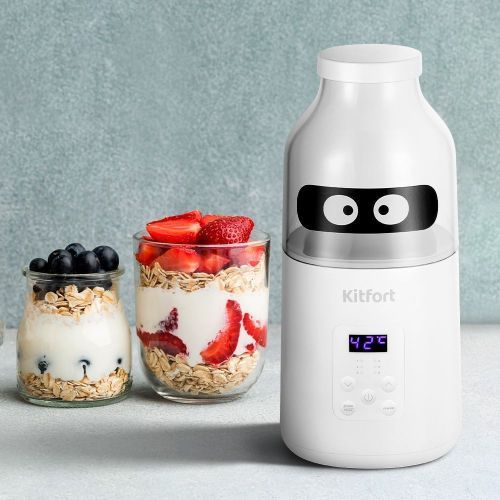 - Йогуртница КТ-6296 выполнена в креативном дизайне – в форме бутылки. Она компактная и не займёт много места у вас на кухне. В любой момент вы можете отклеить стикер без вреда для поверхности.