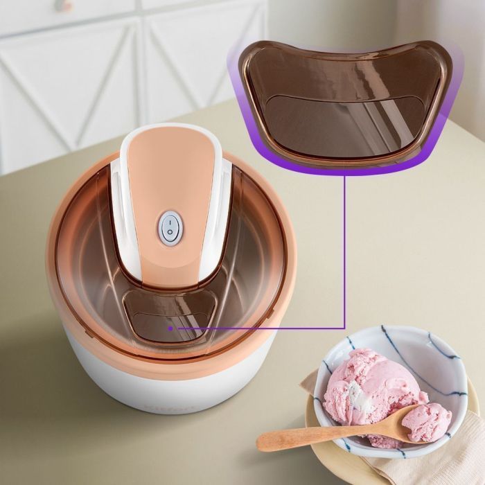 - Сначала чашу мороженицы с хладагентом замораживают в морозильной камере, затем заливают в неё готовую охлаждённую смесь для мороженого. После запуска двигателя смесь для мороженого начинает перемешиваться лопастью и одновременно охлаждаться стенками чаши.