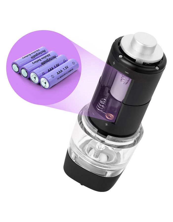 - Управление мельницей осуществляется всего одной кнопкой. Поместите устройство над блюдом и нажмите на кнопку, чтобы быстро перемолоть специи, не прикладывая никаких усилий.