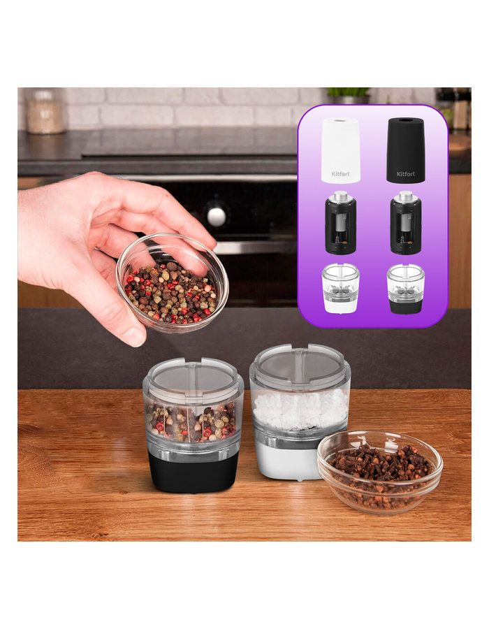 Набор автоматических мельниц КТ-6002 состоит из 2 мельниц разного цвета, которые измельчают перец-горошек, соль и другие специи. Благодаря им блюда будут всегда приправлены свежими специями, которые имеют более яркий и насыщенный вкус и аромат.