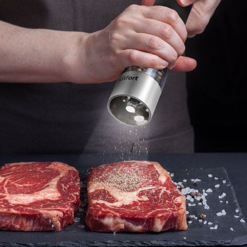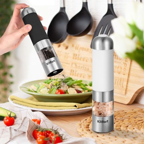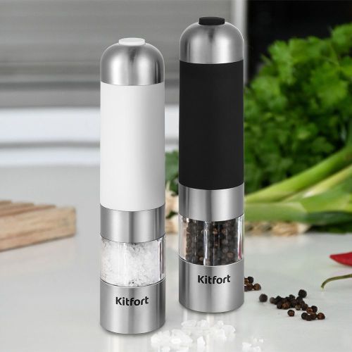 Набор мельниц Kitfort KT-6007 измельчает перец-горошек, соль и другие сухие специи. Нет нужды молоть специи впрок. Мельница одновременно мелет и дозирует. Поместите её над блюдом и просто нажмите кнопку.