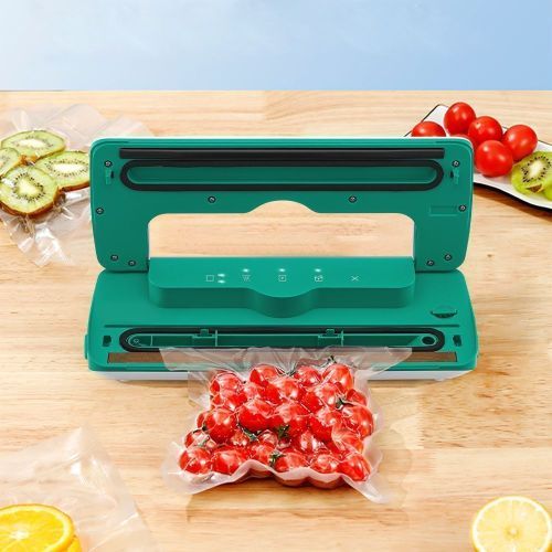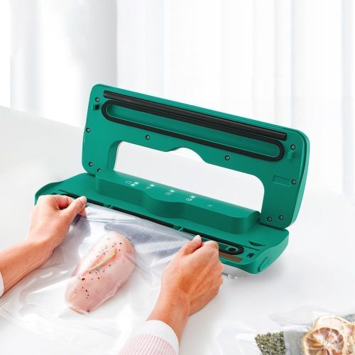 - Сначала вы укладываете открытый край пакета под крышку прибора, а затем вакууматор приступает к откачке воздуха из пакета. В результате образования вакуума пакет плотно обжимает содержимое, после чего начинается запечатка открытой стороны пакета.