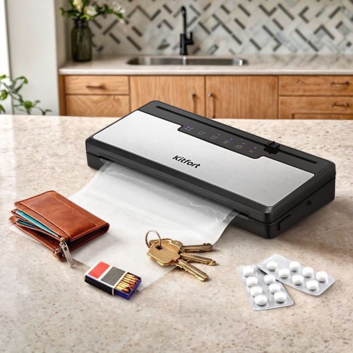 Вакууматор — устройство для вакуумной упаковки продуктов. Вакуумирование позволяет защитить от пыли, грязи, сохранить аромат и продлить срок годности пищевых продуктов. Мощность 110 Вт. Максимальная ширина пакета для вакуумирования 30 см.