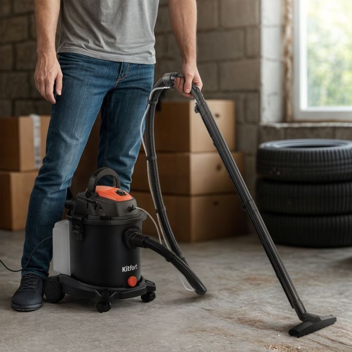 Пылесос КТ-5552 идеально подходит для сухой и влажной уборки любых помещений. Благодаря высокой мощности в 1200 Вт, он легко справляется с мелким мусором, пылью и даже разливами воды. Ёмкость пылесборника 20 л.