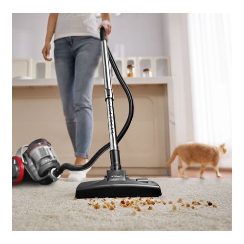 - Напольная щётка имеет выдвигаемый ворс для уборки ковров и ковровых покрытий. Педаль для быстрого переключения между чисткой ковра и гладких поверхностей можно слегка нажимать ногой, не наклоняясь к пылесосу и не прерывая уборку.