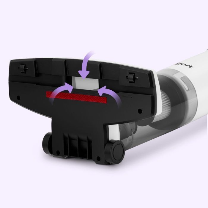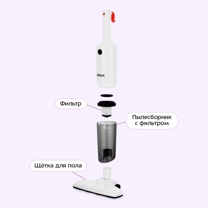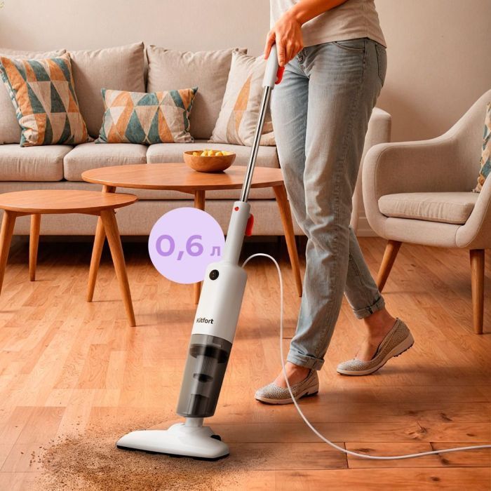 Вертикальный пылесос очень удобен при локальной уборке. Он компактен, всегда под рукой и готов к работе. При отсоединении удлинительной трубки он превращается в ручной пылесос. Его конструкция позволяет легко проникать в труднодоступные уголки квартиры. Мощность 400 Вт. Ёмкость пылесборника 0,6 л.