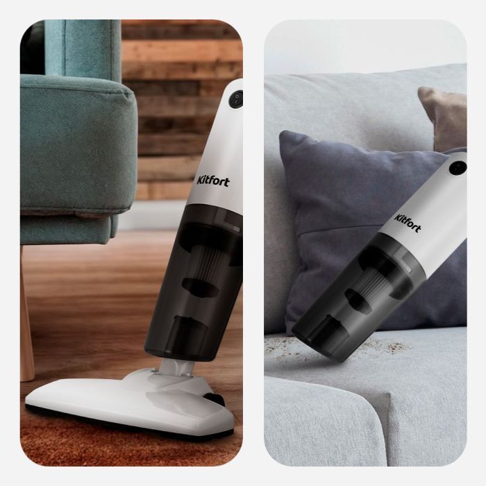- Конструкция «2 в 1» предусматривает наличие ручного пылесоса, который удобно использовать отдельно. Ручным пылесосом можно пропылесосить углы и плинтусы, обивку мебели, пыль со шкафов, куда обычным пылесосом очень трудно дотянуться.