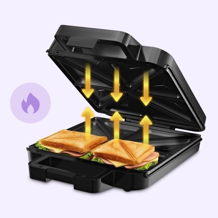 Бутербродница — это незаменимый инструмент для приготовления вкусных и разнообразных сэндвичей. С её помощью вы сможете легко сделать до четырёх порций бутербродов с самыми разными начинками, включая сладкие. Мощность