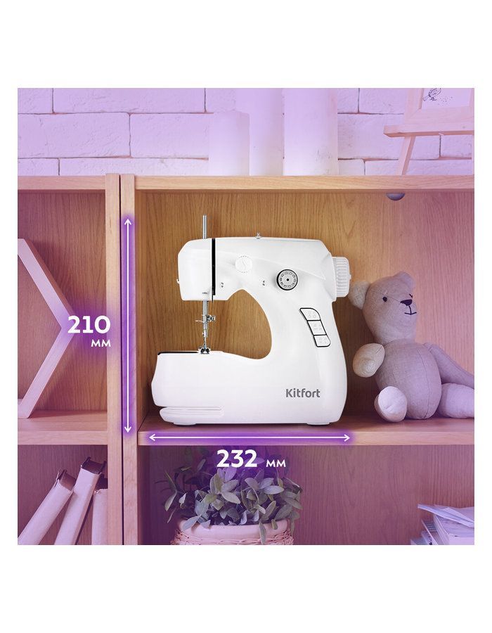 - Портативная швейная машина очень компактная и лёгкая: её вес составляет около 1 килограмма. Она не займёт много места у вас в доме, при транспортировке или хранении.
