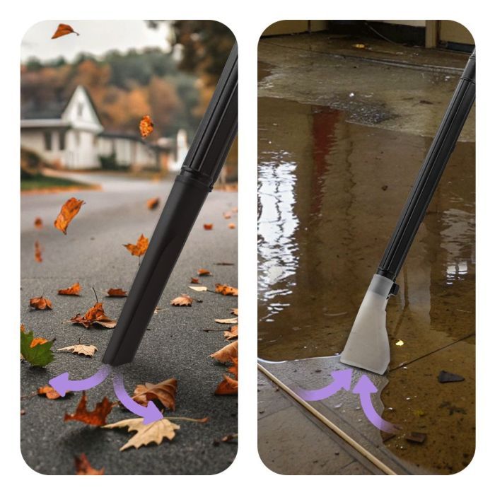 • Щётка со скребком подходит для мытья полов и удаления воды. Узкая насадка позволяет очищать труднодоступные места. Большая насадка со скребком и ворсом предназначена для влажной уборки больших поверхностей, а малая — для небольших участков.