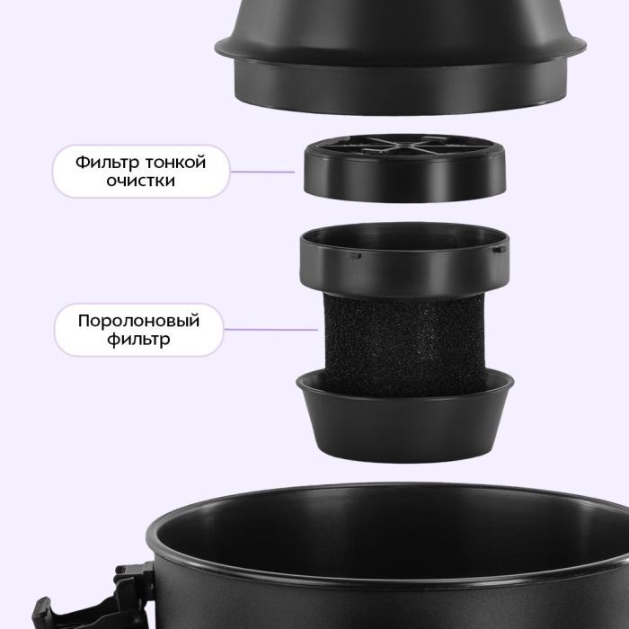 • Пылесос оснащён фильтром тонкой очистки и поролоновым фильтром. Поролоновый фильтр защищает от крупных частиц, а фильтр тонкой очистки предотвращает попадание пыли в мотор. Пылесборник легко опустошается: достаточно открыть пробку сливного отверстия.