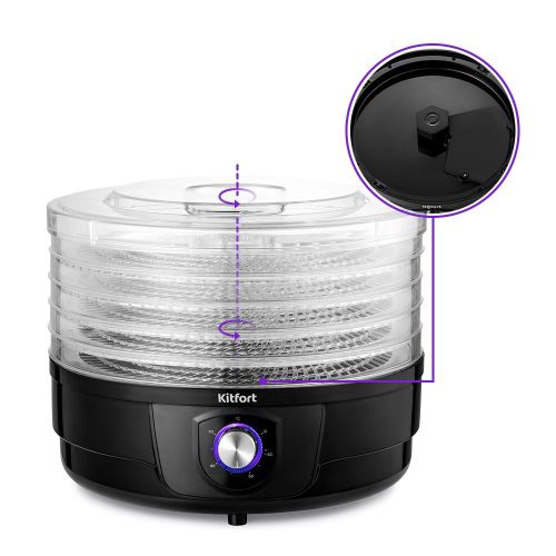 - Сушилка имеет в комплекте 5 поддонов из прозрачного пластика, поэтому вы легко можете наблюдать за процессом сушки любимых продуктов. Устанавливайте от 1 до 5 поддонов друг на друга в зависимости от количества продуктов.