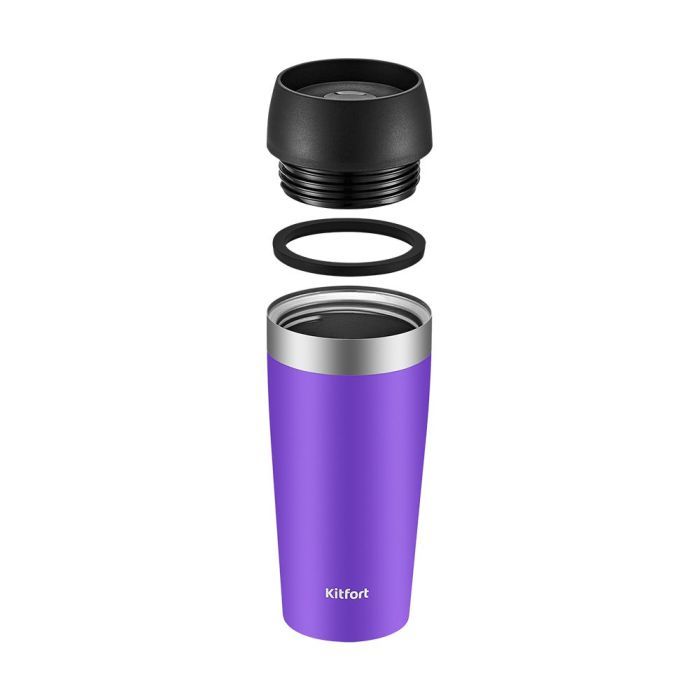 В термокружке Kitfort КТ-1223 навинчивающаяся крышка с силиконовым уплотнительным кольцом. Такая конструкция защищает от протеканий.