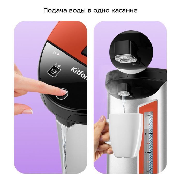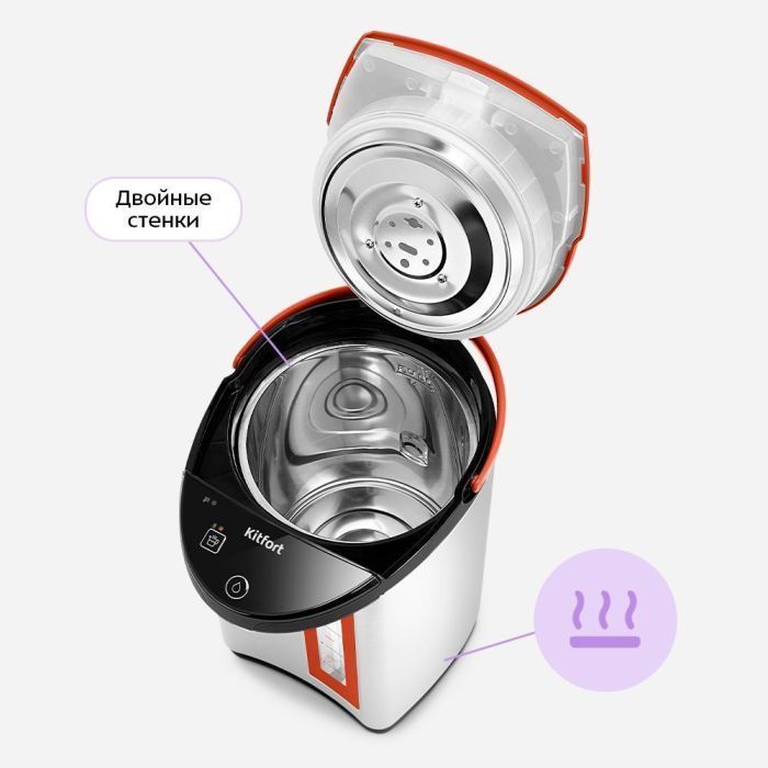 Скрытый ТЭН из нержавеющей стали в KT-2527 не контактирует с водой – благодаря этому образуется меньше накипи. А двойные стенки сохраняют тепло, не давая корпусу нагреваться!