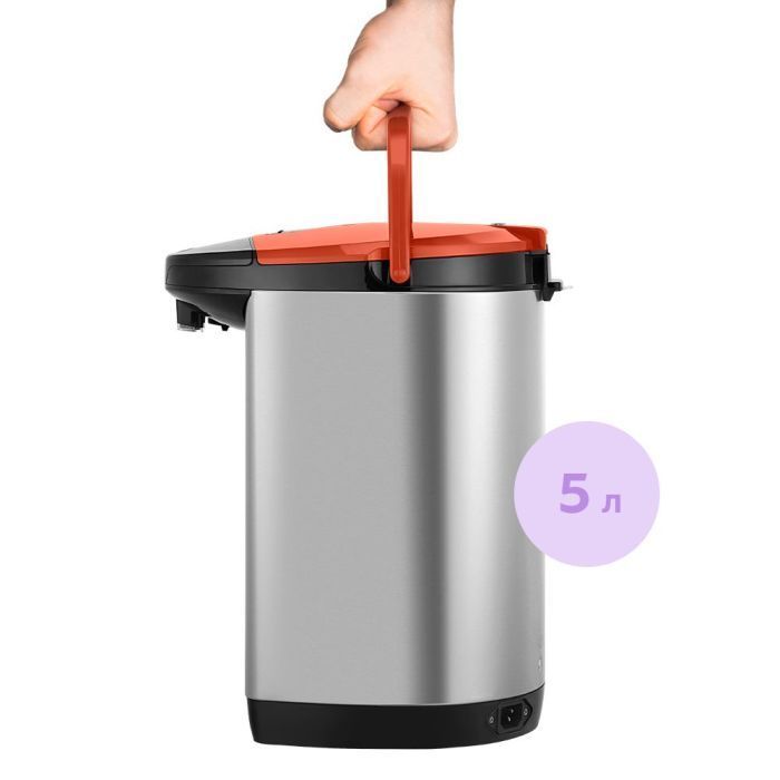 Ёмкость термопота составляет 5 литров - этого точно хватит на множество кружек чая! А чтобы его было легче переносить даже наполненным - в верхней части предусмотрена специальная ручка для переноски.
