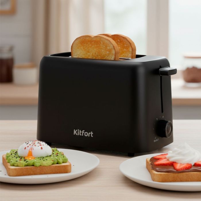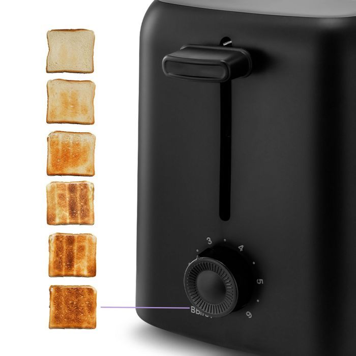 - Тостер оснащён регулятором степени обжаривания от «1» (светлая обжарка) до «6» (тёмная обжарка). Тосты автоматически центрируются, чтобы их обжарка была равномерной. По окончании приготовления тосты поднимаются вверх для лёгкого извлечения.