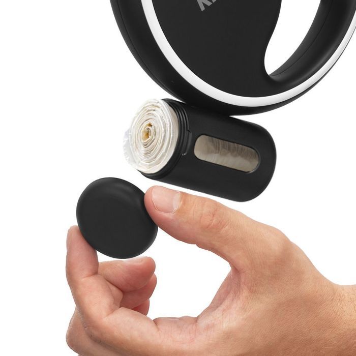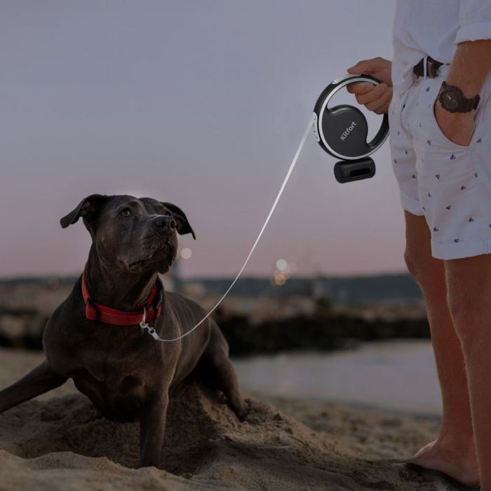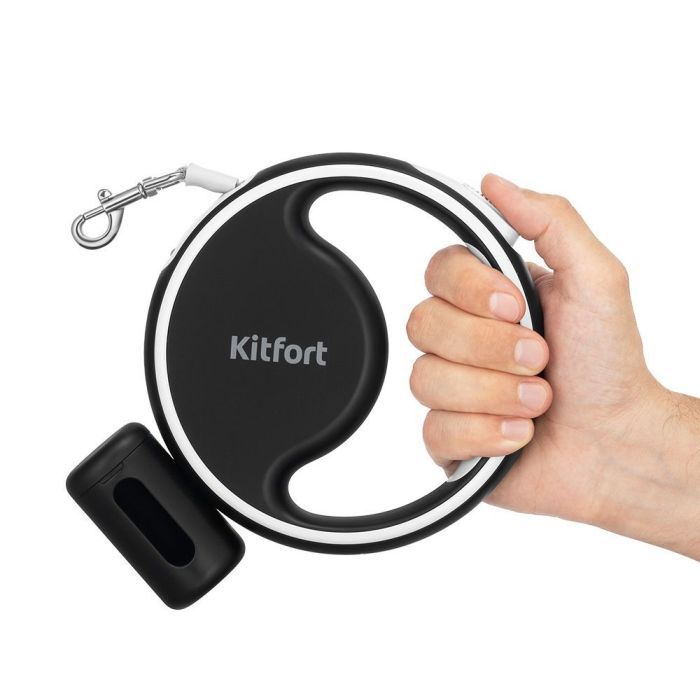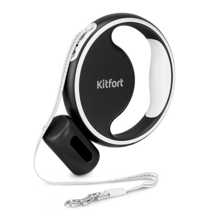 - Поводок-рулетка Kitfort КТ-6274 оборудован съёмным держателем пакетов для выгула, чтобы их было удобно использовать. Вам останется только положить пакеты в бокс и закрутить его! При необходимости контейнер можно снять.