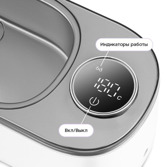 Корпус мойки сделан из пластика, а резервуар, куда помещаются предметы для очистки - из нержавеющей стали. Благодаря компактному размеру мойка не займёт много места у вас на столе. Ёмкость резервуара – 440 мл.