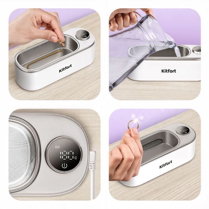 Преимущество ультразвуковых моек — это возможность очищать предметы сложных форм. Налейте воду в мойку и положите украшения, зубные протезы, кисти для макияжа и прочее, включите прибор. Благодаря тщательной чистке удаляются даже въевшиеся загрязнения.