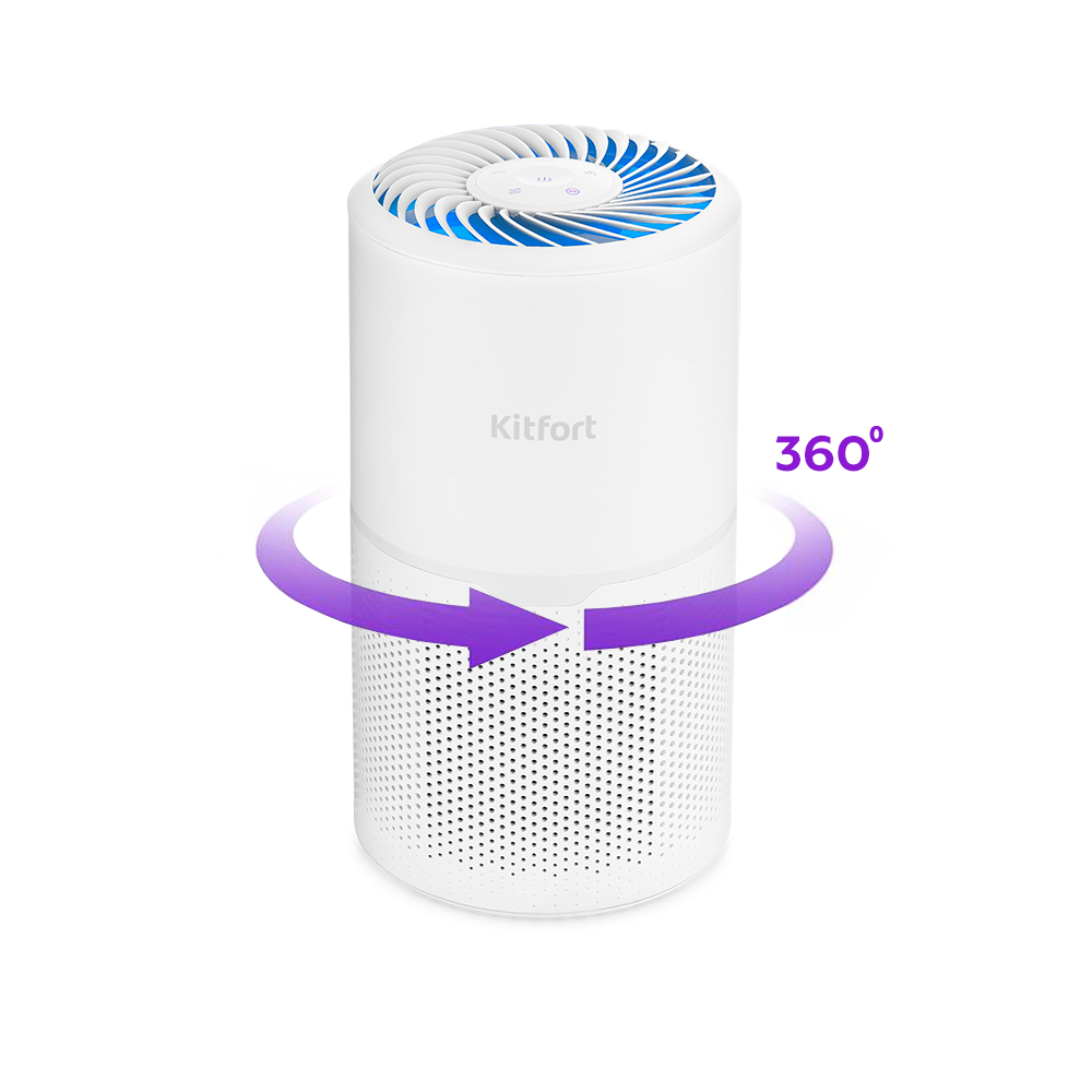 - Чтобы позволить воздуху эффективно проникать со всех сторон, очиститель оснащён воздуховодом по всей своей окружности - 360°.