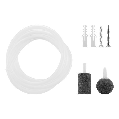 - В комплекте вместе с озонатором идёт шланг и два диффузорных камня для озонации воды. Также в комплекте имеются крепежи для установки устройства на стену.