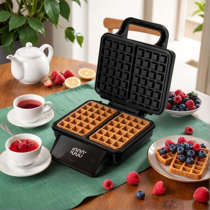 С помощью электрической вафельницы «2 в 1» КТ-4606 вы сможете испечь сразу две бельгийские вафли. Прибор оснащен встроенными электронными весами с дисплеем, что позволит вам взвешивать ингредиенты при приготовлении теста для вафель и других блюд. Мощность 1000 Вт. Размер панелей 232 x 181 мм.