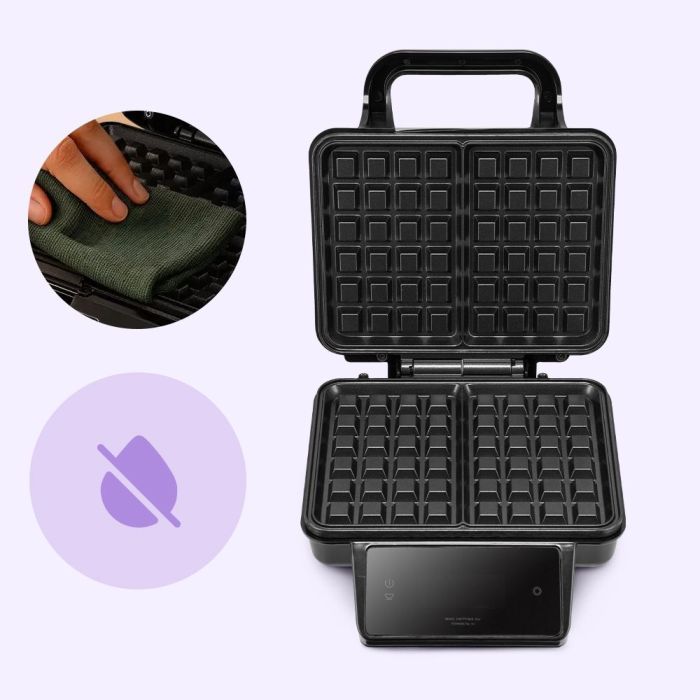 - Благодаря антипригарному покрытию тесто не прилипает к панелям, что упрощает процесс приготовления и позволяет делать идеальные вафли без лишних усилий. Также антипригарное покрытие позволяет готовить без масла и облегчает чистку панелей.
