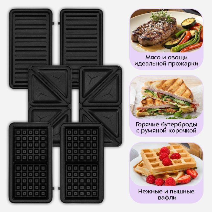 - Стильный универсальный дизайн вафельницы впишется в любой кухонный интерьер. Для удобства ухода панели съёмные – их можно мыть под проточной водой. Разнообразные рецепты и простота приготовления сделают ваши блюда вкуснее!