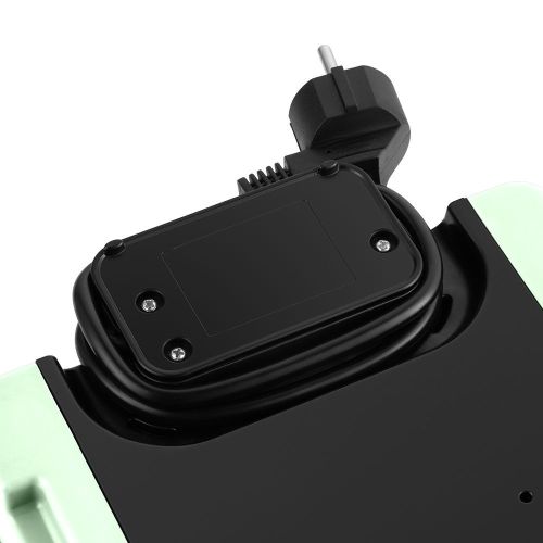 На нижней части корпуса расположен держатель шнура, обеспечивающий удобство переноски и хранения. Также вафельница имеет прорезиненные ножки, которые противостоят скольжению устройства.