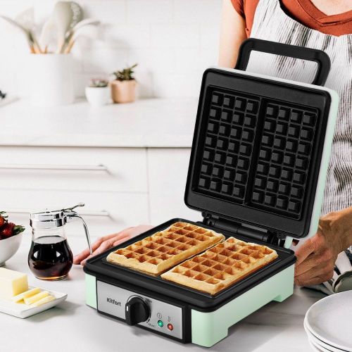 С помощью электрической вафельницы КТ-1693 можно испечь толстые бельгийские вафли. Разнообразные рецепты этого лакомства и простота приготовления сделают ваши завтраки самыми вкусными. 5 минут и золотистые вафли готовы!