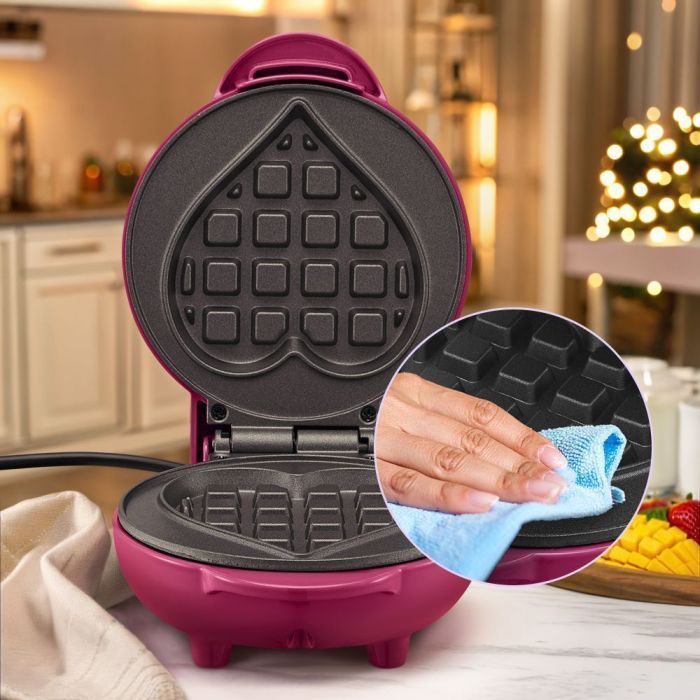 - Антипригарное покрытие вафельницы предотвращает прилипание теста, поэтому вы можете наслаждаться ароматными вафлями, используя минимальное количество масла. Кроме того, антипригарная поверхность панелей значительно облегчает их очистку.