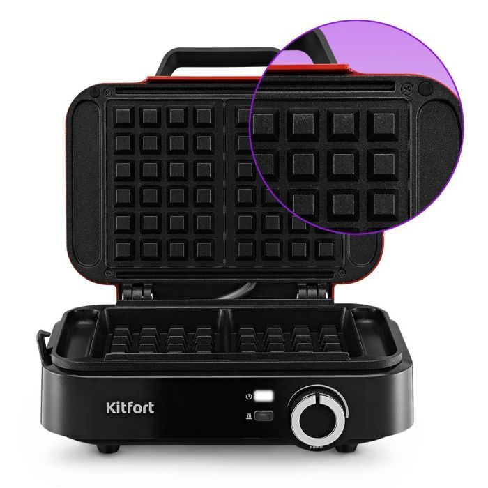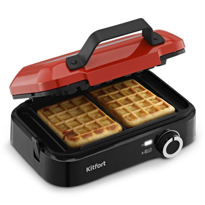 С помощью компактной вафельницы Kitfort КТ-4672 можно приготовить пышные бельгийские вафли на всю семью! В среднем выпекание 2 вафель до золотистой корочки займёт 3-5 минут. Прибор компактный и не займёт много места на кухне.