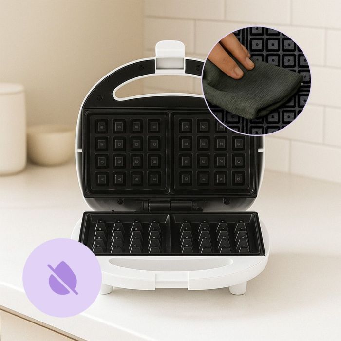 - Благодаря ручке с фиксатором вафельница становится максимально безопасной для использования во время готовки и хранения. Также она надёжно удерживает вафельницу в закрытом положении, предотвращая ожоги паром или горячим тестом.
