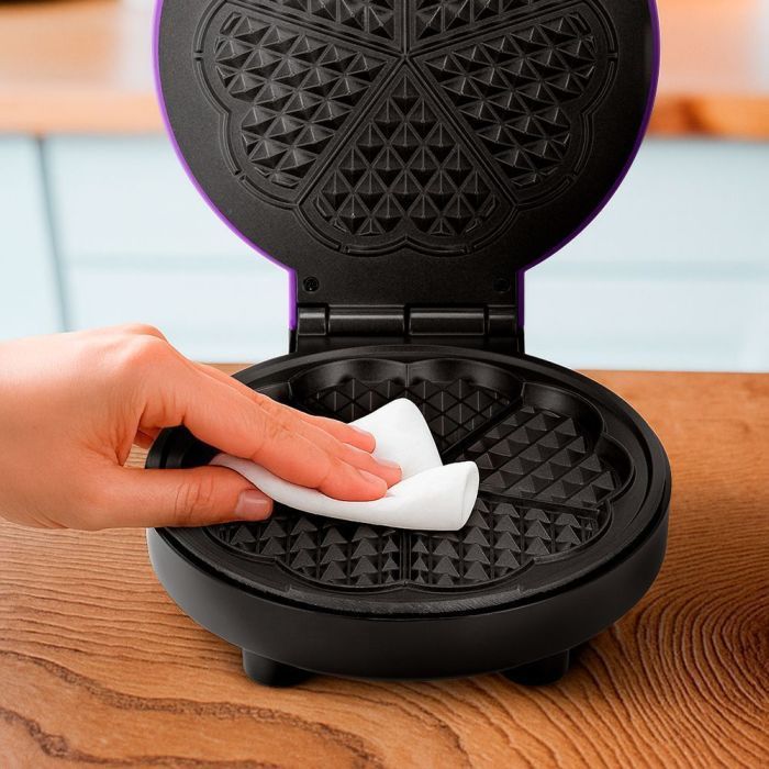 - Благодаря антипригарному покрытию тесто не прилипает к панелям, что упрощает процесс приготовления и позволяет делать идеальные вафли без лишних усилий. Также антипригарное покрытие позволяет готовить без масла и облегчает чистку панелей.