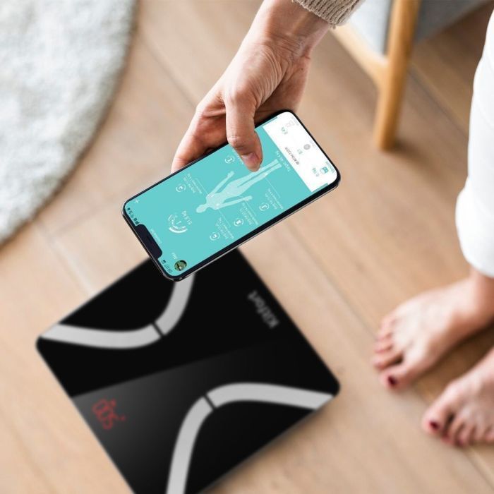 - Через 5-10 секунд после взвешивания, в приложении будут показаны параметры. Среди них: вес, возраст тела, содержание воды, белка, жира в вашем организме, общий баланс вашего тела и т.д. Включение весов происходит автоматически, если встать на них.